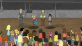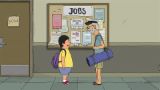 Tina isn't invited to her classmate Tammy's Bat Mitzvah, but ends up at the party anyway, because Bob and the family were hired to cater. A total "Bat-zilla," Tammy's theme is, well, "Tammy," and despite the invite snub, Tina is excited to scope out the BFOS (boys from other schools). Things go awry and Louise and Tammy end up missing, so, to her total delight, Tina is left center stage.